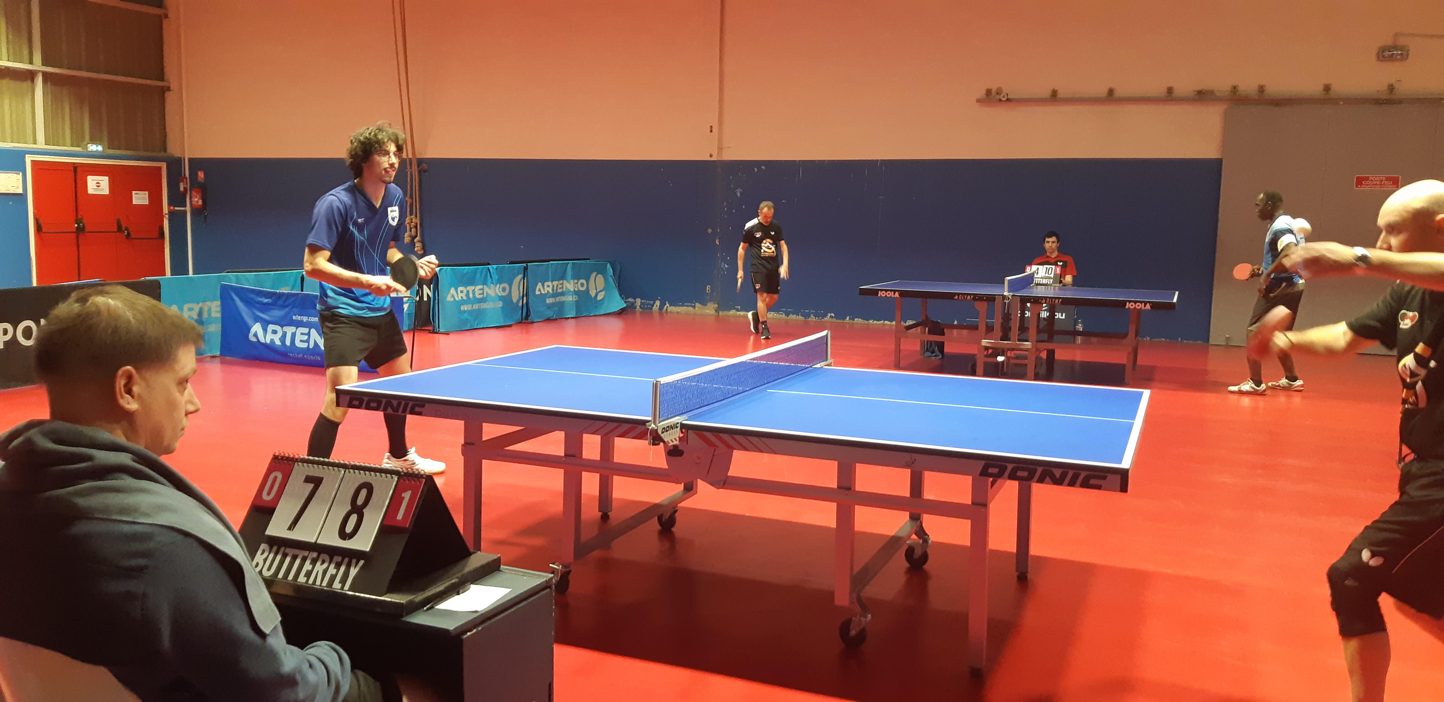 Outre les deux belles et nettes victoires en double d'Olivier/Antoine et de Clément/Yannick sur des scores sans appel : 11-8, 11-8,11-4 et 11-6, 11-9 et 11-8, Olivier et Antoine ont fait le plein (3/3) et Clément a gagné un match de fort belle façon (11-4, à la belle). De son côté Yannick n'a pu s'imposer, mais a réalisé deux superbes prestations, ne cédant à chaque fois qu'à la cinquième manche : 9-11 et 6-11 contre le joueur adverse le mieux classé (8), après avoir remporté les deux premiers sets: 11-9, 11-8. Dommage !