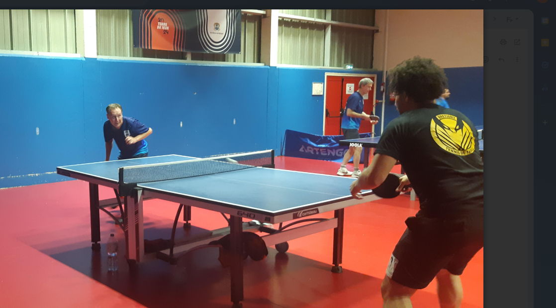 Les Championnat de l'Essonne simples se sont déroulés à Saint Geneviève des Bois les 7 et 8 juin 2025. Le niveau était très élevé. Fabien, dans une poule de 3, a eu affaire d'entrée à un adversaire classé 18, puis à un 9. Battu en 4 manches par le premier, il a échoué de peu (9-11, à la belle) face au second. Et ce n'est pas si mal ! C'est Yvan SINQUIN, classé 16, des Ducks de Bondoufle qui a remporté le titre dans cette catégorie Élites.